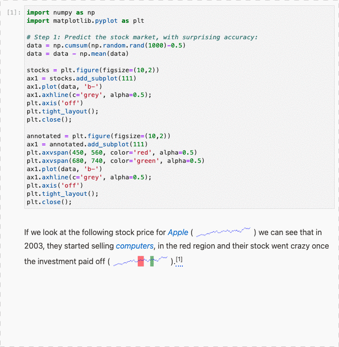 jupyterlab-myst is a fully featured markdown renderer for technical documents, get started with MyST Markdown. It supports the MyST {eval} inline role, which facilitates the interweaving of code outputs and prose. For example, we can use inline expressions to explore the properties of a NumPy array.